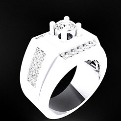 Với thiết kế nhẫn mặt vuông, bóng loáng, hai cạnh bên được trang trí bởi dải kim cương tấm trong khuôn chữ nhật tạo nên cảm giác mạnh mẽ, sắc bén mà lại cực kỳ tinh tế cho các quý ông. Bệ để viên chủ cũng được thiết kế hình vuông để tạo nên sự đồng nhất về kiểu dáng cũng như khẳng định sự uy quyền của các đấng mày râu. Hai bên nửa trên của đai nhẫn là dải ô chữ nhật lõm vào thân nhẫn nạm kín kim cương. Tổng thể các họa tiết trên thiết kế nhẫn này đều lấy ý tưởng hình học để triển khai tạo nên sự độc đáo và khác biệt cho kiểu dáng nhẫn lần này.