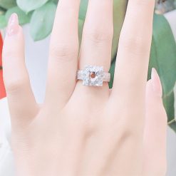 Mẫu thiết kế mặt vuông đính kín kim cương sẽ rất phù hợp cho những cô nàng cá tính, sắc sảo, góc cạnh. Mặc dù vậy nhưng nó vẫn không bị mất đi kiểu dáng thanh lịch với đai nhẫn bản nhỏ được các nghệ nhân khéo léo gắn kết những viên kim cương tấm trên hông nhẫn. Viên kim cương chủ sẽ được đính chắc chắn trên 4 chấu được thiết kế sẵn trên mặt nhẫn, từ đó tạo điều kiện để ánh sáng được hấp thụ nhiều nhất có thể, mang đến hiện tượng khúc xạ cho chiến nhẫn trở nên nổi bật và lộng lẫy, thu hút được sự chú ý của những ánh nhìn xung quanh. Tổng thể vỏ nhẫn tuy đơn giản nhưng các chi tiết trên nó lại khiến chiếc nhẫn nổi bật và lộng lẫy hơn hết.